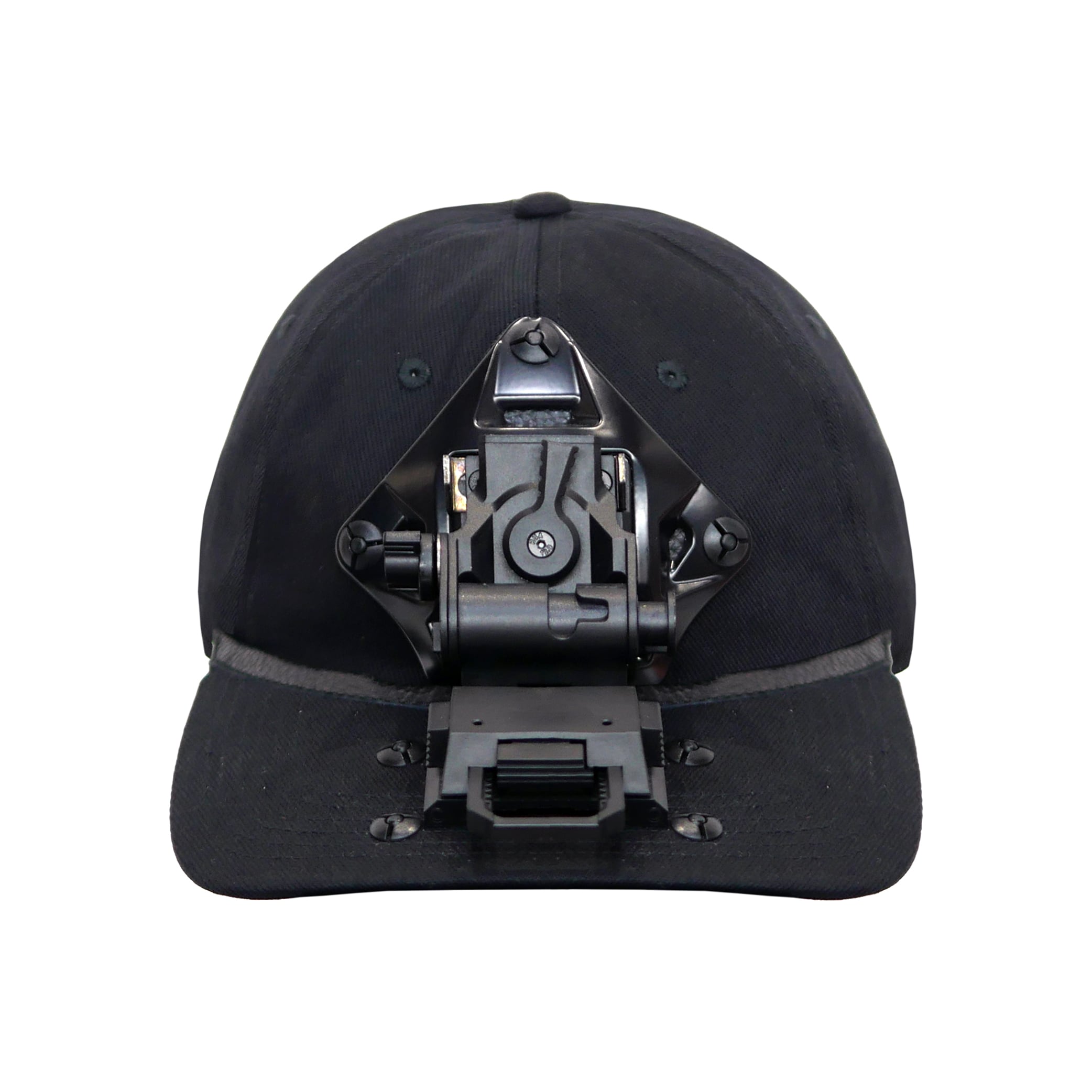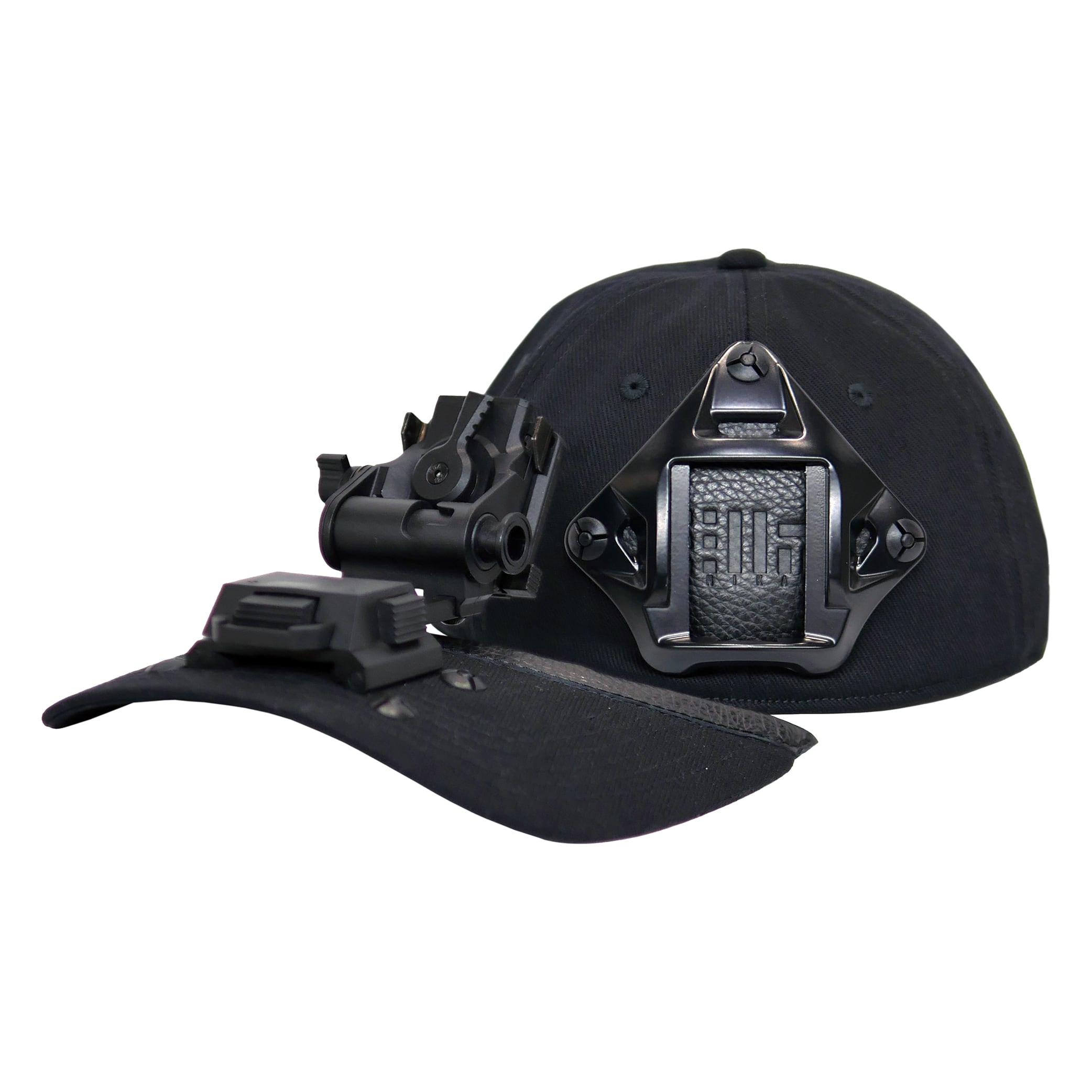 ミリタリーで使用されるナイトビジョン(暗視ゴーグル)用のアタッチメントとヘルメッドの マウントパーツをシンプルなCAPに組み合わせたアイテム。 特徴的なパーツはつばの跳ね上げと脱着が可能。
